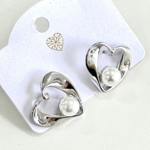 Brinco Pequeno Coração Vazado Com Pérola CX - 01